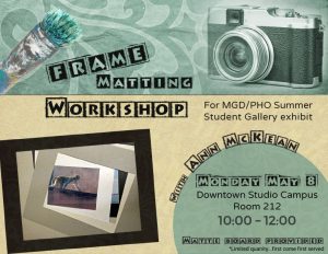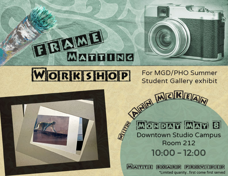 Including course marketing, MGD/Photography gallery announcement, Frame matting workshops, and a competition for the Multicultural Awareness Conference marketing campaign in the Computer Graphics I course